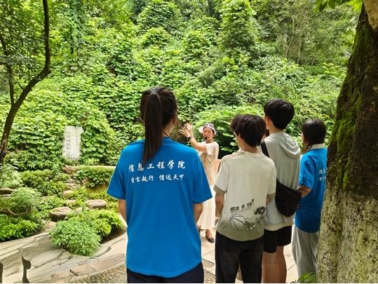 二:尋訪岳麓遺韻,感悟歲月崢嶸 實踐隊走進岳麓書院,通過清代楹聯、“實事求是”匾額等文化載體叩問千年文脈與紅色基因,感悟書院崇德、嚴謹、勤奮的治學之風,聆聽“思想溯源”的第一課。在愛晚亭下,隊員們以主題討論和情景再現形式重溫激昂歲月,共振“革命師友群像”的熱血精神。踏入第九戰區司令部戰時指揮所舊址,實踐隊員們在講解員的引導下重溫中國軍隊依托岳麓山地形優勢與日軍展開拉鋸戰的作戰歷程,感悟中國軍隊在長沙會戰中的英勇氣概和戰術智慧。