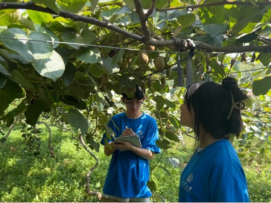 隨后,實踐隊深入種植區開展產業調研,觀察并記錄了當前階段獼猴桃的生長狀況。通過對比所記錄的各項指標,隊員們不僅直觀地了解到不同果品的精細化管理差異,更深刻體會到基地工作人員應對市場、順應自然的智慧與辛勞。大家表示,此行不僅是“看果”,更是向扎根土地、向上生長的勞動者學習。