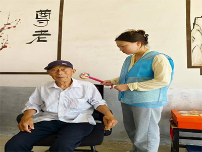 在邳州市夕陽紅護理院,響水順康養老院團隊成員則結合中醫養生知識,手把手教老人使用艾草錘,用實物操作拉近距離,同時為老人們進行一對一反詐知識普及。