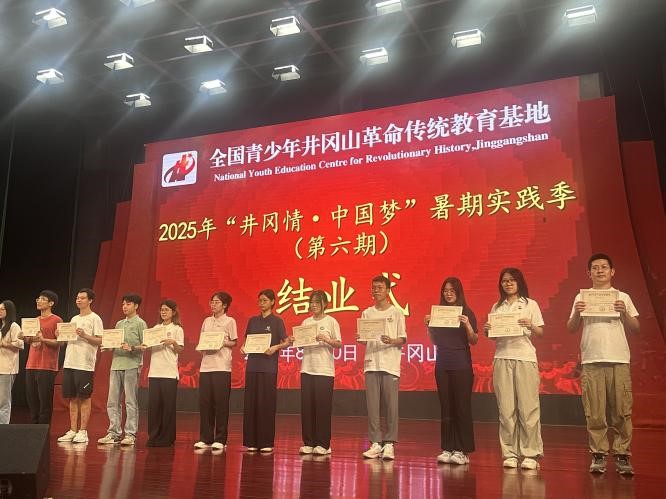8月11日晚,“哲學+”實踐團與其他高校實踐團隊齊聚報告廳,參與結業儀式。儀式莊重而熱烈,團中央井岡山教育基地領導為各大實踐團隊頒發結業證書,表彰深入調研、勤學善思的卓越表現。離別之際,王一成老師向實踐團成員們作總結致辭。他高度肯定了全體成員在追尋歷史脈絡、探究理論源流過程中展現的求索精神與學術熱忱,并勉勵團隊成員將井岡山淬煉的思考與收獲內化于心、外化于行,持續深化對馬克思主義中國化時代化規律的理解,勇擔理論創新的時代使命。