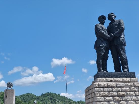 一程山路,一曲贊歌。實踐團順抵達朱毛會師廣場。巍峨紀念碑前,師生肅立。矗立于廣場中央的朱毛會師雕像,以蒼勁雄渾的線條,銘刻下朱毛會師歷史場景——兩位偉人巍然屹立,目光如炬,穿透歷史煙云,雙手緊握,傳遞著信念與力量,訴說著革命理想的磅礴。“這一幕,不僅是往昔崢嶸的永恒定格,更是一部以磐石書寫的宣言,昭示著道路選擇的正確;這一幕,早已超越了物理的聯結,化為永不褪色的精神印記——團結、奮斗與必勝的信念。”實踐團成員王詩語如是說。熱風獵獵,紅旗之下,團隊成員齊誦團隊宣言,聲震林樾,團隊成員的信仰亦更加堅定。