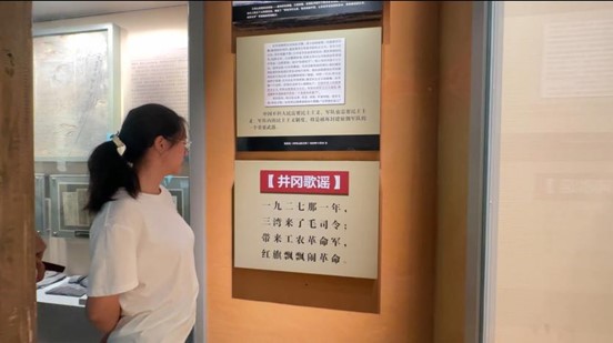實踐團成員們在實踐中遇見一位特殊的受訪者——她曾是井岡山革命博物館的講解員。她談起這片土地上的烽火歲月,眼睛閃爍著如當年站在展柜前一般清澈而熾熱的光芒。那些浸透著血與火的故事、那些鐫刻著信仰與犧牲的名字,早已融入她生命的脈絡。“今天我仔細聽了講解員的講解,講解詞和我們那時候相比,有很多創新之處。講解詞的變遷,也是時代發展的縮影。”分別時,她拍拍團隊成員的肩膀,分享參觀感受,對我輩青年寄予深情囑托。