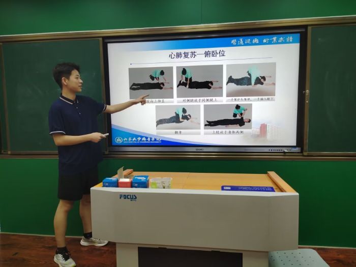 工欲善其事,必先利其器。實踐隊深知專業素養是急救科普的生命線。7月8日,全體隊員跟隨山東大學齊魯醫院急診科醫生,接受專業知識的培訓。與此同時,實踐隊攜手山東大學學生急救協會,深度推動山東省紅十字會"駐濟高校開展紅十字應急救護能力提升項目",在專業淬煉中鍛造過硬本領。為打造精品課程,團隊匠心獨運,針對青壯年、中老年、少年兒童三大群體特性,量身定制三套宣講內容,并精心編纂圖文并茂的急救手冊,讓專業知識"飛入尋常百姓家"。