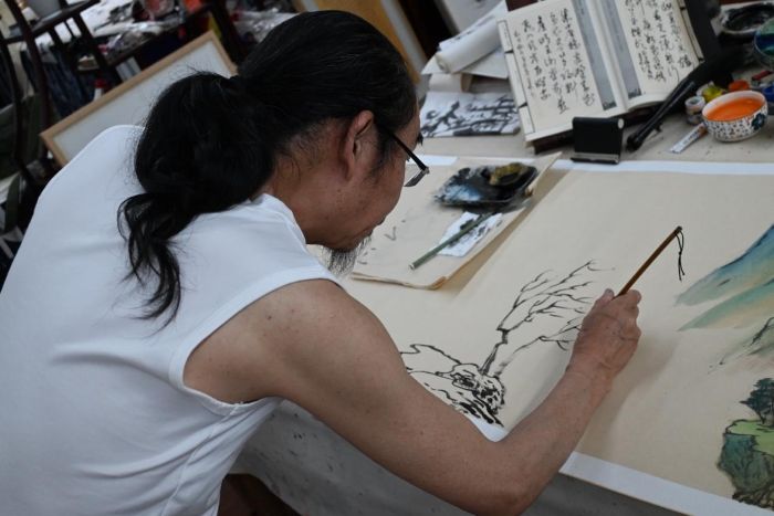 實地考察活動開展當日,考察小組的成員們心緒激蕩,滿懷熱忱——在畫外桐塢美術館,團隊成員欣賞了眾多來自中國美院、中央美院等高校研究生作品,館內國畫大師揮毫潑墨,山水畫躍然紙上,讓成員們大飽眼福。據工作人員介紹,該村已吸引90個藝術家工作室入駐,形成“家家有畫室、戶戶飄茶香”的獨特景觀。