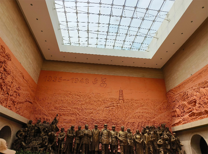 展廳內的歷史回響:從文物中觸摸崢嶸歲月 進入紀念館序廳,迎面可見“延安精神永放光芒”八個金色大字,兩側浮雕生動再現了紅軍長征、延安大生產等歷史場景。團隊成員在講解員的引導下,依次參觀“紅軍長征的落腳點”“抗日戰爭的政治指導中心”“新民主主義的模范試驗區”等展區。