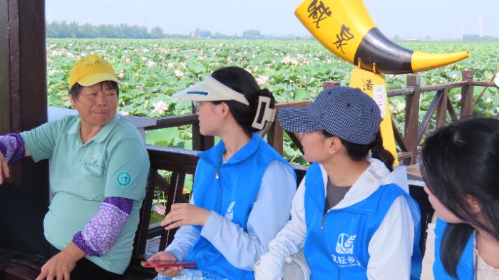 “春賞菜花,夏賞荷花,秋賞菊花,冬賞蘆花”是泰州興化的四季旅行攻略。實踐團前往調研的夏季正是賞荷的好時節。萬畝荷塘景區位于興化市千垛鎮境內,核心景區面積達1200畝,是國家3A級旅游景區。近年來,興化市修繕了相關基礎設施,同時增設以“一鷺蓮升”為主題的兩處網紅打卡點,使景區的旅游體驗全面升級。