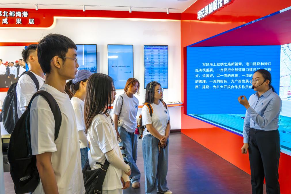 圖為北部灣北海碼頭公司為桂海實踐隊介紹。童驍 供圖