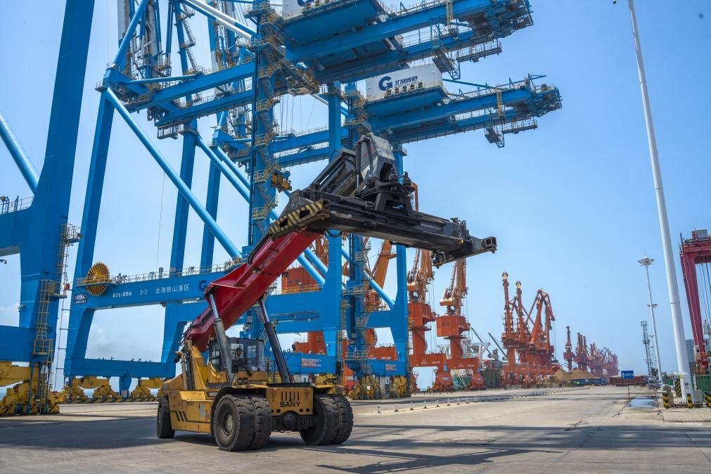 圖為北部灣鐵山港碼頭岸橋工作場景。童驍 供圖