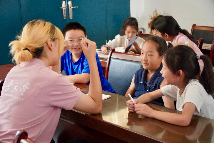 在整體安全教育講解結束后,實踐隊隨即組織開展深入安全知識強化活動。隊員們融入孩子們中間,分成多個交流小組,圍坐一起耐心傾聽孩子們描述日常生活中的安全困惑和實際場景。隊員們結合實例詳細分析風險成因與應對方法,如溪流活動的隱患或家電使用注意事項,確保孩子們理解安全知識的核心要點。李凡老師在各組之間穿梭,觀察并參與孩子們的討論。活動室內洋溢著專注討論和熱心教學的氛圍,孩子們通過積極提問,逐步解決了生活中的安全隱患,在互動中深入掌握了安全知識。