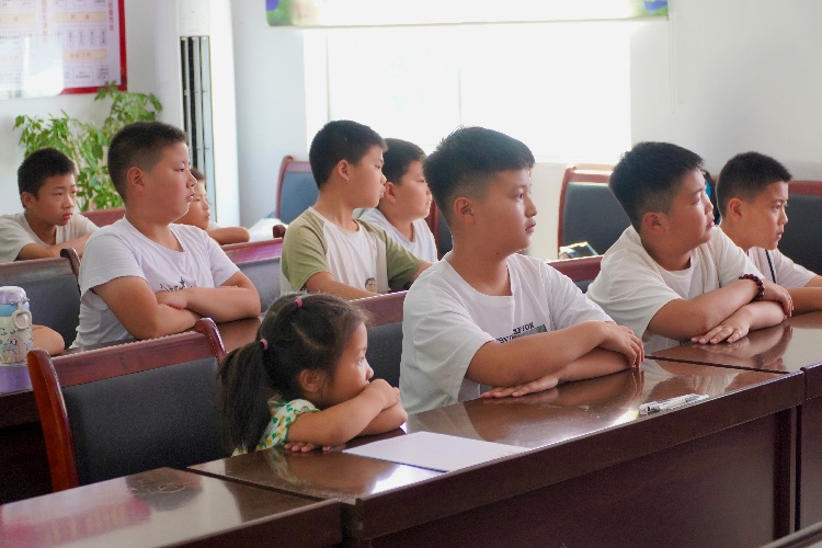 實踐隊成員薛志鵬為孩子們精心準備了一堂內容充實且富有實踐意義的安全知識教育課。課程緊密結合店坊河村兒童日常生活中的實際風險,系統講解了用水、用電安全規范、溪流旁出行的交通安全以及防洪避險等關鍵知識點。他重點講解村旁溪流沿線缺乏防護設施的潛在危險,提醒孩子們在溪邊活動時需格外警惕。同時,還詳細講解了安全用電常識、汛期預警信號識別方法、撤離路線選擇及緊急避險措施。課堂上,孩子們全神貫注,目光聚焦投影屏幕,尤其在關鍵安全要點時神情格外專注,認真吸收每一個重要安全知識。