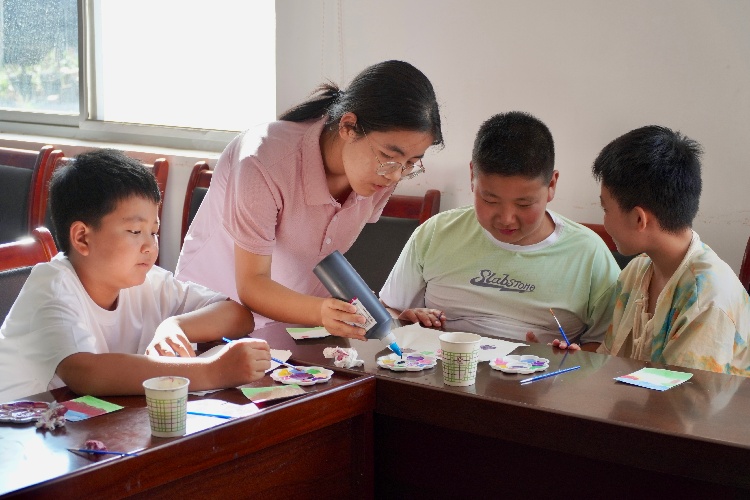 夏日的蟬鳴聲中,孩子們正為暑假作業而煩惱,實踐隊立即開辦“青禾學業加油站”。每天固定的課業輔導時間,“加油站”內氣氛熱烈而有序,孩子們簇擁著“小老師”,大膽提出積攢的疑問。面對拗口的古文背誦,隊員將艱深晦澀的文言文本轉化為富有節奏感的誦讀材料;講解數學方程時,通過等量代換等直觀教學方法,使抽象的數學符號具象化;英語單詞記憶則巧妙融入身邊事物,朗朗讀書聲飛出窗外,與傳來的廣播聲交織在一起,構成了一幅生動的鄉村教育圖景。