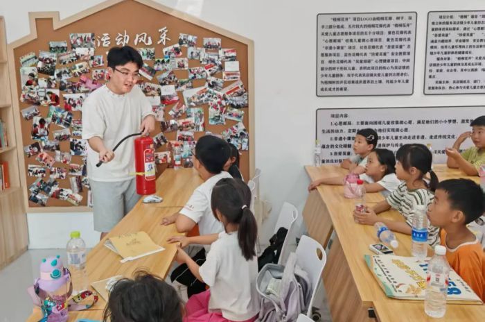 生活技能:賦能終身成長。當紅色教育的余韻仍在心間回蕩,志愿者們已帶著卡通課件走進生活技能課堂。衛生課上,志愿者用卡通課件講解食品安全,從“營養搭配”到“識別變質食品”;自護環節中,滅火器的實操演示引發陣陣驚嘆,孩子們爭先恐后地提問,臉上寫滿掌握技能的成就感。這些課程設計延續了支教團“知識傳遞+能力培養”的雙線模式,讓教育真正融入生活。