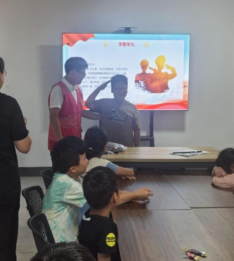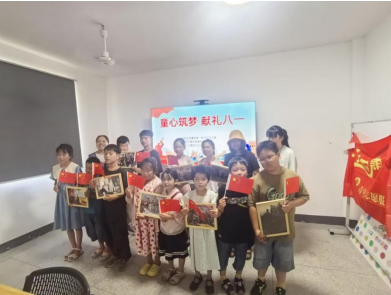 2025年盛夏時(shí)節(jié),安徽財(cái)經(jīng)大學(xué)浮云游子實(shí)踐團(tuán)帶著精心設(shè)計(jì)的課程與滿腔熱忱走進(jìn)東風(fēng)村,與數(shù)余名留守兒童共同開啟了一場別開生面的暑期成長之旅。7月20日,以"厚植家國情懷·點(diǎn)燃成長星火"為主題的實(shí)踐教育活動(dòng)在村文化禮堂拉開帷幕,通過立體軍事模型拼裝、標(biāo)準(zhǔn)軍禮教學(xué)、沉浸式紅旗扎染等創(chuàng)新形式,將紅色基因傳承與國防意識培育巧妙融入趣味互動(dòng),為孩子們的假期生活繪就了一幅充滿愛國情懷的成長畫卷。