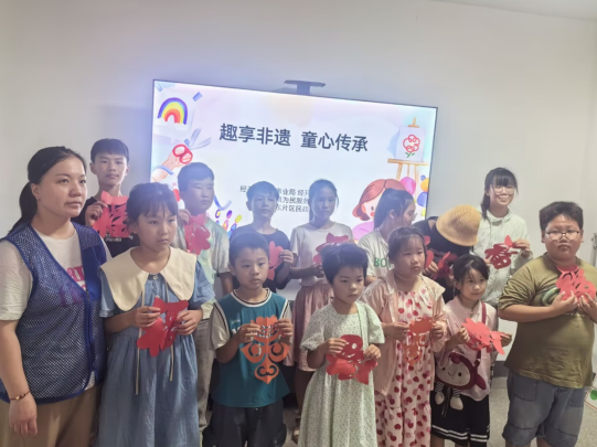 交流分享:以童真視角感悟文化傳承 活動尾聲,孩子們圍坐分享感受。小宇舉著“會飛的房子”剪紙說:“原來舊紙片能變出這么多故事!”曉萱捧著“魚”作品笑言:“我學(xué)會用剪刀‘畫畫’啦!”隊(duì)員們傾聽著童言童語,深知非遺傳承的新活力,正藏在這些不加修飾的感悟里。