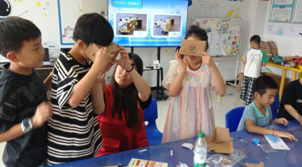 圖為小朋友們試戴制作的VR眼鏡。周明杰攝
