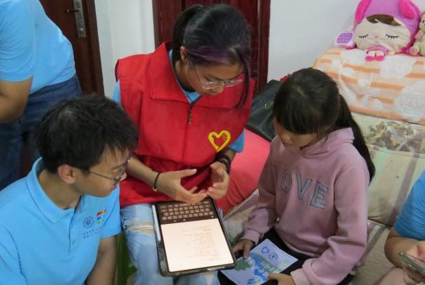 圖5團(tuán)隊(duì)成員正在為孩子講解問卷內(nèi)容
