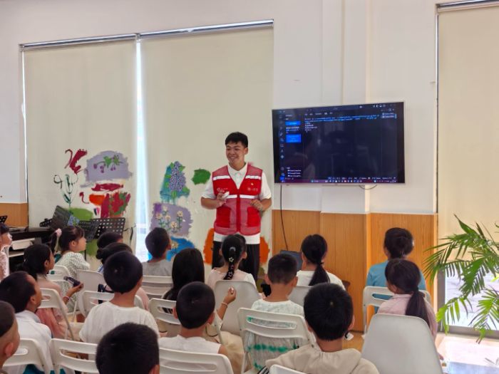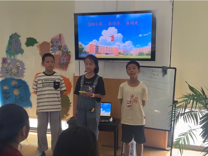 課程觀摩結束后,“繪夢黔境·星光啟程”結營匯演在活動中心熱烈開啟。低年級萌娃以童謠合唱《種太陽》開場,宛如高原躍動的金色光斑;中年級學子獻上原創詩朗誦《山外的翅膀》,“我想乘著知識的翅膀,掠過群山親吻海洋”——字句鏗鏘,承載對遠方的熾熱渴望;高年級團隊則融合課程所學,自編自演科普劇《機器人小科漫游記》,用生動劇情演繹自動化技術如何守護社區安全。當全體支教隊員與孩子們手挽手共唱隊歌《黔行的路》,清澈的聲浪掠過蒼翠山巒,將儀式推向高潮。