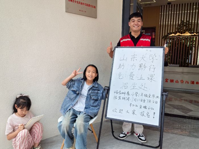 金銀山少兒活動中心負責人張雪君表示,金銀山少兒活動中心的發展離不開國家與社會的幫助與支持,在活動中心,孩子們最喜歡的活動就是來自高校團隊的志愿支教,這些支教課程為他們開闊了視野,拓展了思維,帶來了陪伴。希望有更多像山東大學“助力黔行”志愿服務隊隊員一樣的青年們投身基層,到祖國和人民需要的地方貢獻青春力量。