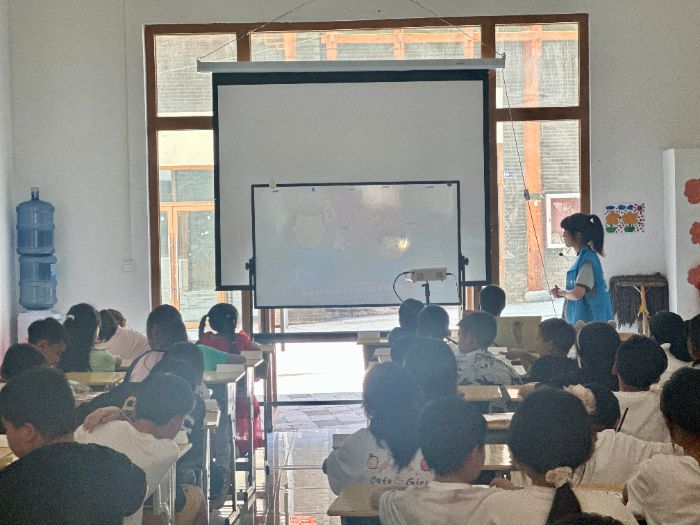 下午兩點半,支教授課正式開始。在數學課堂中,隊員馬卓鈺為學生們帶來了邏輯推理的內容,讓學生在數學知識中感受推理“環環相扣”的樂趣;在“兩彈一星”特色課程中,隊員林芷妍用認真且有趣的講述為大家介紹了“輻射”的知識,拓寬學生眼界,帶來了不一樣的科普體驗。在課程結束后的作業輔導時間中,隊員李昭燁、馬卓鈺維持自習秩序、幫助學生答疑解惑,有針對性地開展了輔導工作。