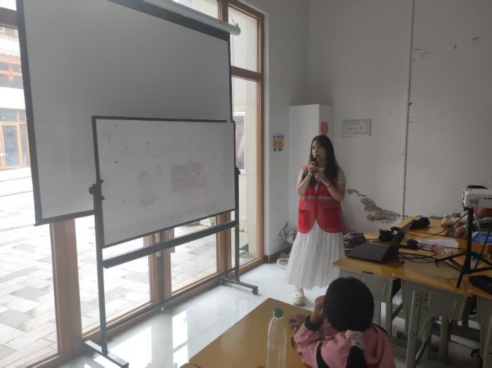 上午,“七彩假期”系列專題課之“美麗家園我行動”開課。支教隊員林芷妍站在講臺上,望著臺下眼神明亮的孩子們,以“我們身邊有哪些自然朋友?又有哪些環境小麻煩?”的提問拉開序幕。話音剛落,孩子們的小手便如雨后春筍般舉起,“有河流、森林!”“塑料袋會污染土地!”稚嫩的聲音此起彼伏,瞬間點燃課堂氛圍。隨后,一段5分鐘的動畫視頻生動演示了廢紙如何變成再生紙、廢塑料如何化身花盆,孩子們瞪大眼睛,不時發出“原來垃圾還能變寶貝”的驚嘆。