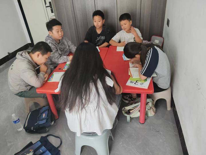 發(fā)音融鄉(xiāng)趣 江淮方言里沒有“th”咬舌音,孩子們總把“three”讀成“tree”。8月7日,周子馨帶孩子們到操場,每人發(fā)一朵蒲公英:“舌尖碰牙齒,吹飛絨毛——‘three’。”白色絨球飄向空中,孩子們跟著模仿,慢慢掌握了咬舌技巧。“以前總找不到感覺,現(xiàn)在看蒲公英飛就會了!”王浩宇舉著花莖,和同學(xué)喊“three,two,one”。情景課上,志愿者用竹竿和葵葉搭“涼亭”,讓孩子們扮演“烏云”“雨滴”和“小動物”。“烏云”追著“雨滴”跑,孩子們舉著葵葉傘躲進(jìn)“涼亭”,邊跑邊喊“take shelter!”給這個夏天留下了許多歡聲笑語。