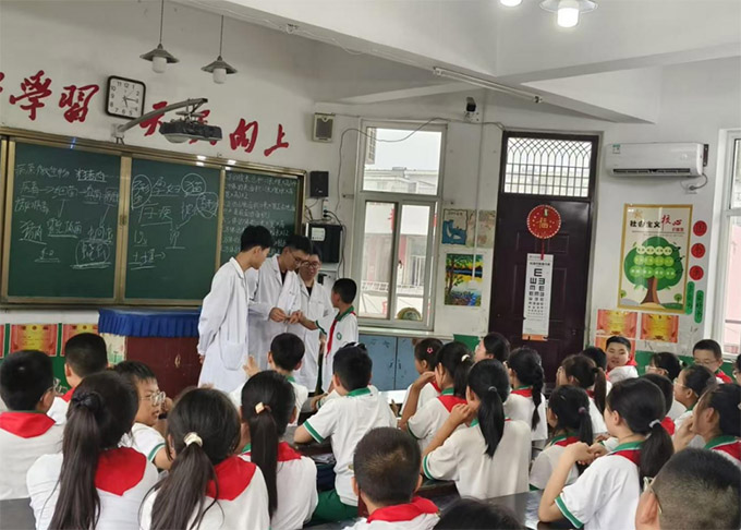6月25日,實(shí)踐團(tuán)抵達(dá)林州市第二實(shí)驗(yàn)小學(xué),活動(dòng)伊始,實(shí)踐團(tuán)在校園內(nèi)開展了基礎(chǔ)科普互動(dòng),團(tuán)隊(duì)成員借助趣味問答、健康知識小測試等互動(dòng)形式來調(diào)動(dòng)小學(xué)生們對健康知識的興趣,點(diǎn)燃大家對健康知識的好奇。為了把這份熱情延續(xù)到更深層的知識傳遞中,實(shí)踐團(tuán)成員緊接著登臺,用原創(chuàng)情景劇《急診室里的小馬虎》講述“不洗手引發(fā)感染”的故事引出健康主題,迅速吸引師生關(guān)注。