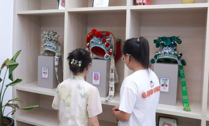 禮堂里每一件展品都有著獨一無二的淵源。微光小隊隊長詳細地介紹著婺劇的歷史、角色行當、表演特色等知識。當看到精美的婺劇臉譜時,小朋友們不禁發出陣陣驚嘆。紅臉代表忠勇,如關羽;白臉代表奸詐,如曹操,不同的色彩與圖案蘊含著豐富的人物性格信息。
