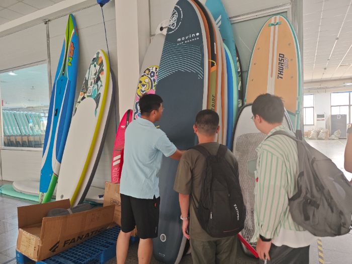 在公司工作人員的引領(lǐng)下,隊員們首先學(xué)習(xí)了充氣式槳板生產(chǎn)的工序。從切割原材料拉絲布到材料熱熔拼接,再到配件裝配,隊員們時刻關(guān)注溫度控制、拼接時間等關(guān)鍵因素,就不同材料熱熔時的特性差異,以及如何通過調(diào)整參數(shù)保證拼接質(zhì)量等問題積極詢問。通過觀察工作人員切割拉絲布的操作,隊員們記錄普通槳板與高性能競速板關(guān)鍵部位尺寸設(shè)計之間的差別,思考切割精度對槳板整體性能的影響,深刻感受到標準化流程帶來的高效與精準。隊員們還查看裝配流程圖,對照實際裝配操作,分析裝配順序?qū)宸€(wěn)定性和功能實現(xiàn)的作用,了解噴涂工藝,包括涂料選擇、噴涂厚度控制等,切實體會生產(chǎn)過程中的力學(xué)原理與應(yīng)用。在交流環(huán)節(jié),隊員們提前準備了相關(guān)問題,與公司圍繞大創(chuàng)項目內(nèi)容中的DIC技術(shù)(數(shù)字圖像相關(guān)法)展開深入探討。公司人員通過實際案例,向隊員們講解檢驗槳板性能的關(guān)鍵指標和核心區(qū)域,對隊員后續(xù)研究的區(qū)域提出了方向性建議。隊員們認真記錄關(guān)鍵信息,結(jié)合所學(xué)力學(xué)知識,與公司人員探討側(cè)面材料拼接處的力學(xué)問題。最后,紀禎和對公司現(xiàn)狀、行業(yè)前景進行提問。隊員們了解到,公司目前面臨著材料粘貼處高溫容易開膠這一主要問題。此外,國內(nèi)外行業(yè)發(fā)展情況讓隊員們深刻認識到力學(xué)研究在解決實際問題、推動行業(yè)發(fā)展中的重要性。隊長紀禎和表示,隊員們會將此次參觀學(xué)習(xí)的成果帶回學(xué)校,在徐國強的指導(dǎo)下,進一步深入研究,努力為解決行業(yè)問題貢獻自己的智慧與力量。