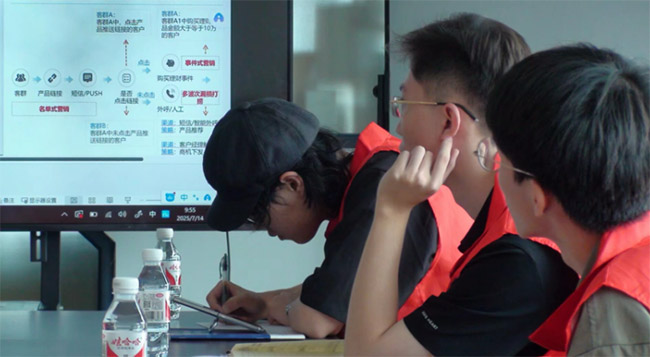 王建軍董事長作為大連理工大學93級校友,具有15年專注于金融IT行業的企業管理經驗,自成立雅拓信息以來,便全力進入銀行數據服務這一細分市場。站在數智化前沿,王董事長不僅分享了其在校求學記憶與投身互聯網行業的經歷,還重點解析了公司數智化營銷平臺的運作邏輯,以及在互聯網沖擊下的數字化轉型實戰經驗。這讓實踐團成員深刻認識到:在大數據時代,信息數據的高效整合與應用,是驅動“云認養”創新發展的核心引擎。
