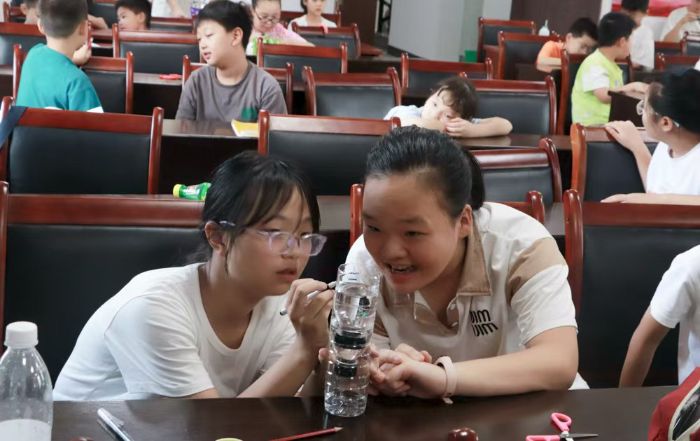 “江河不以水匱,計時必以漏刻。”微光團隊以塑料瓶、吸管和刻度紙制作了簡易水鐘,演示了古代漏刻的等時性原理。當孩子們調節水流速度,觀察水位變化與時間的關系時,老師借機科普“節水灌溉”:“古人用漏刻分配農田用水,今天我們也要珍惜每一滴水,像水鐘一樣‘精準’用水。”孩子們在實驗中既理解了虹吸原理,更樹立了節水意識。有學生提議:“回家后要把水鐘放在菜園旁,幫爺爺計時澆水!”