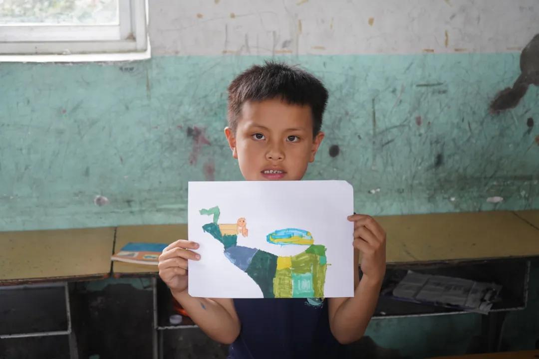 “我的夢想” 為主題的繪畫課程上,張慧依引導(dǎo)孩子們暢所欲言,分享自己的夢想。隨后,她手把手教孩子們用畫筆描繪心中的夢想畫面。孩子們在繪畫中