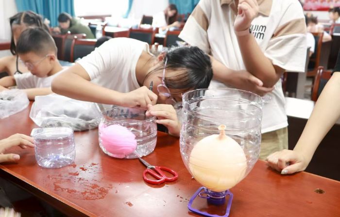 科技課堂上總是充滿驚嘆與歡笑,簡單的知識在一聲聲“哇塞”中顯得尤為有趣,為此微光小隊決定延續傳統,舉辦第七屆“致遠杯”科技節。簡單的紙張撐起龐然大物,詮釋受力點的秘密;自制“微型灌溉系統”解決旱季田地問題;水火箭的升空帶回航空夢;熔巖燈的翻轉展現了化學元素的碰撞魅力。