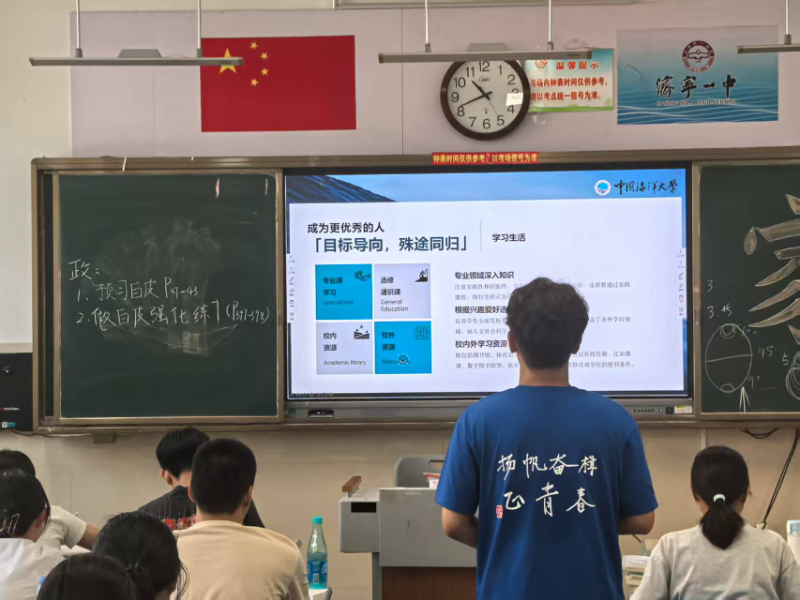 夏日的濟寧,荷風送爽,求知氛圍濃厚。2024年8月20日至8月23日,中國海洋大學管理學院“儒韻任城”微山湖畔實踐隊(以下簡稱“實踐隊”)奔赴山東省濟寧市濟寧一中(百廿一中),為該校兩個文科班級的100余名高二升高三學子,帶來了一場線下為期半天、內容豐富的中國海洋大學介紹與職業生涯規劃宣講活動。此次活動以“破解升學焦慮、明晰規劃方向”為核心目標,結合前期扎實調研成果,為即將面臨高考擇校與專業選擇的高中生搭建起從高中學習通往大學發展的認知橋梁,贏得了師生的廣泛好評。