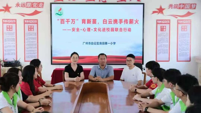 為深入貫徹百千萬工程精神,提升學校學生安全意識,廣東白云學院教育學院黨委副書記李志華、趙紅教授、趙寬老師帶領18名大學生組建了護苗突擊隊,奔赴良田第一小學開展百千萬工程實踐活動。護苗突擊隊成員懷揣著“以美育浸潤童心,護航祖國未來”的信念走進良田第一小學,以“安全+藝術”的創新模式,為學校孩子們帶來了一場別開生面的學習盛宴。