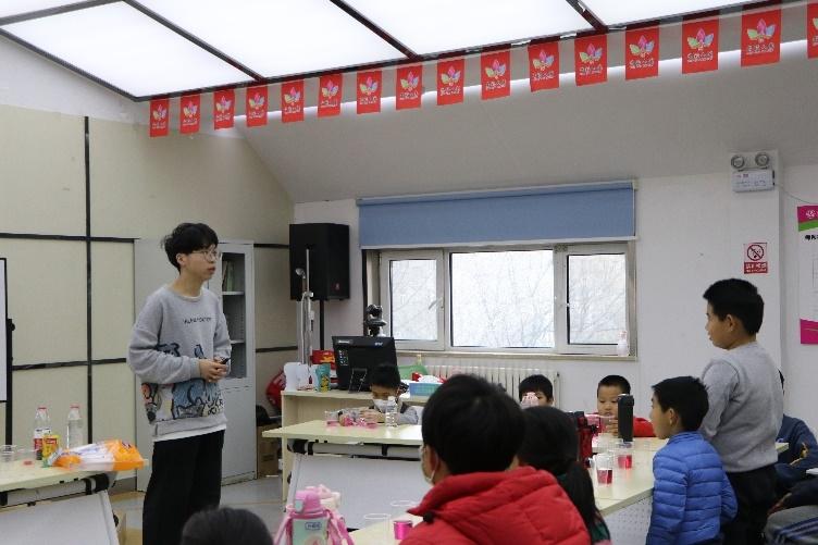 2月2日下午,山東大學學生唐仲英愛心社在甸柳社會工作服務站開展的科普課堂迎來了第二節課程,本次興趣課堂活動主要是為承接上節課程所學科學知識,帶領孩子們一起動手進行科學小實驗,通過有趣的科學小實驗來培養孩子們的對科學的興趣和動手操作能力。