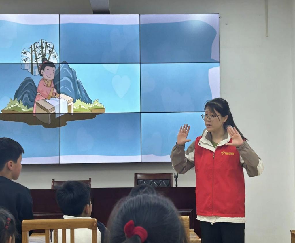 在小游戲的熱身之后,是由團隊成員王礫雪和程玲所設計的“看圖猜成語”活動。通過生動形象的圖片,讓孩子們在有趣的猜謎過程中學習成語。每個成語背后都有一個故事或智慧,孩子們在猜成語的過程中,不僅增長了知識,還提升了文化素養。這種教學方式打破了傳統的枯燥講授,孩子們在輕松愉快的氛圍中,既鍛煉了語言能力,又加深了對中華文化的理解和熱愛。