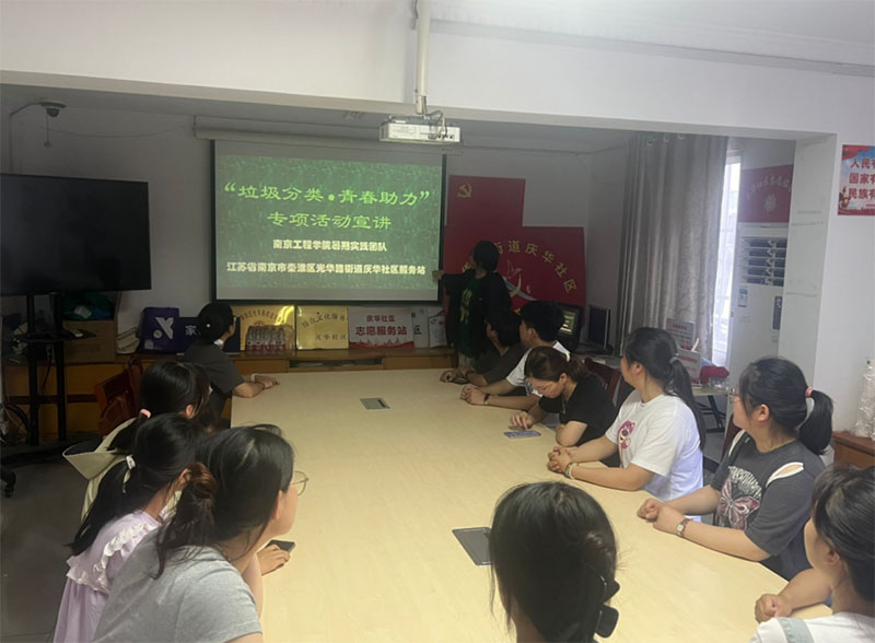 為了積極響應國家、學校的號召,普及垃圾分類知識,推動垃圾分類廣泛實行,為保護環境、共建綠色家園添磚加瓦,2024年7月4日,南京工程學院經濟與管理學院的 “環保先鋒”暑期實踐小分隊來到南京市秦淮區光華路慶華社區,小隊成員們以宣傳教育、實地指導、互動活動等多種方式開展了一場妙趣橫生的垃圾分類實踐活動。