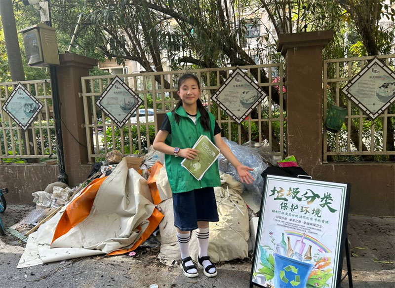 圖4 實踐隊員在社區內設立垃圾分類示范點