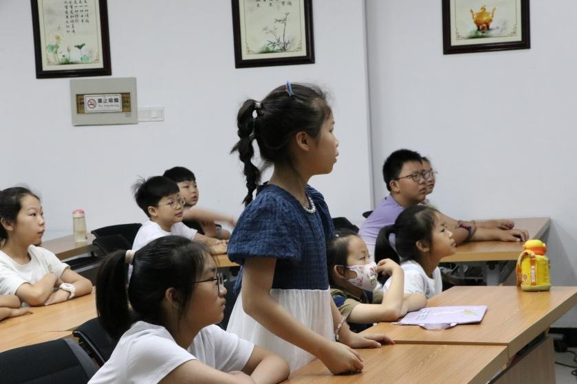 實踐團隊的講解員用PPT為小朋友們講述了大運河的悠久歷史、重要作用以及其所承載的豐富文化內(nèi)涵。從古代的漕運繁忙到如今的文化傳承。為了讓小朋友們更好地理解大運河文化,講解員還設(shè)置了互動提問環(huán)節(jié)。在我們隊員劉亞文的提問后,小朋友們紛紛舉起小手,踴躍回答。有的小朋友雖然回答得不太準(zhǔn)確,但他們的積極參與和勇敢表達贏得了大家的掌聲鼓勵。實踐團隊的成員們耐心地為小朋友們解答問題,引導(dǎo)他們深入思考,進一步加深了對大運河文化的理解。