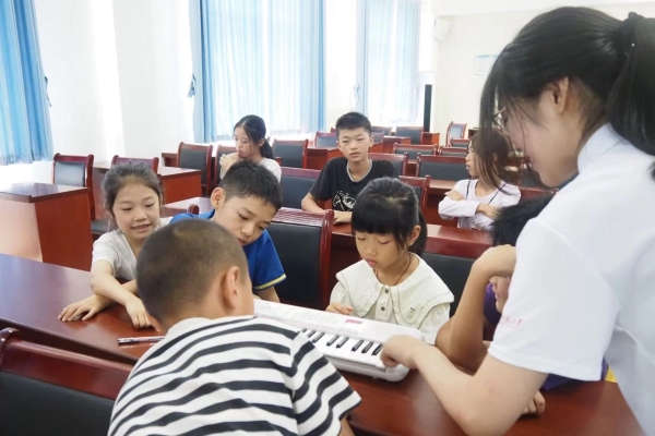 在第一次教學活動中,冬青營隊長楊靈燦和周燁向學生們介紹了冬青營的基本情況,并宣讀此次夏令營的班規,以更好規范課堂秩序,保證課堂質量。隨后,冬青營成員分別作自我介紹。針對不同學生的具體情況,冬青營成員們制定了不同的教學方案。實踐團先后開展地理課,生物課,歷史課等教育科普課程,讓孩子們更多地學習到書本外的知識,豐富孩子們的知識面。同時,實踐團成員還設計了動手實踐課程,如音樂課和繪畫課,讓孩子們通過彈奏樂器和動筆繪畫增強動手能力,在實踐中獲得知識。為增強孩子們的法律意識,實踐團成員印佳慧開展了普法教育課程,讓孩子們更多地了解法律,學習法律。