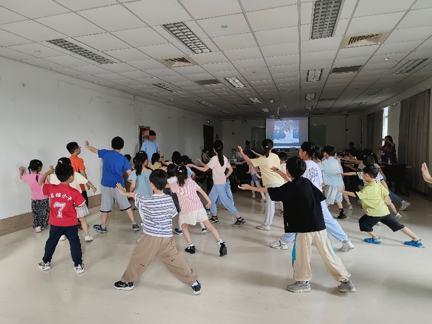 在活動的下午,為鍛煉放松小朋友的身體,志工老師們設置了體育課-太極拳,首先通過視頻介紹了太極拳的由來,讓同學們了解作為中國非物質文化遺產的太極拳的歷史和現實意義。緊接著,同學們在老師的帶領下一起學習二十四式簡化太極拳。跟著視頻教學和老師的指導,同學們進行了太極拳1-11式的學習。在學習過程中,老師重點講解了“野馬分鬃”“白鶴亮翅”“十字手”“攬雀尾”等動作,同學們積極配合,動作力求標準。最后,老師對動作規范的同學進行了表揚的獎勵。通過學習太極拳,同學們進一步體會中華優秀傳統文化的魅力,相信以柔克剛、剛柔并濟的思想一定會讓他們在未來不懼險阻、勇往直前。