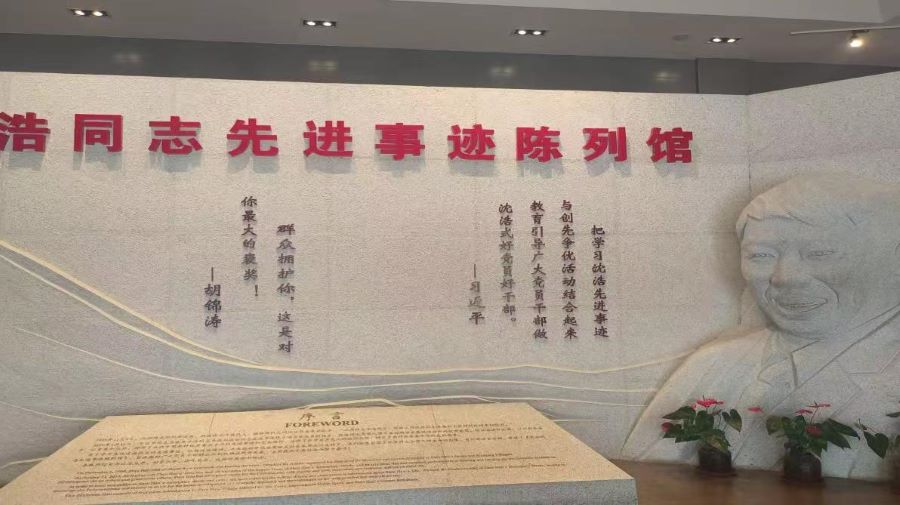 ? 圖為團隊成員參觀沈浩同志先進事跡陳列館。 宋園業供圖