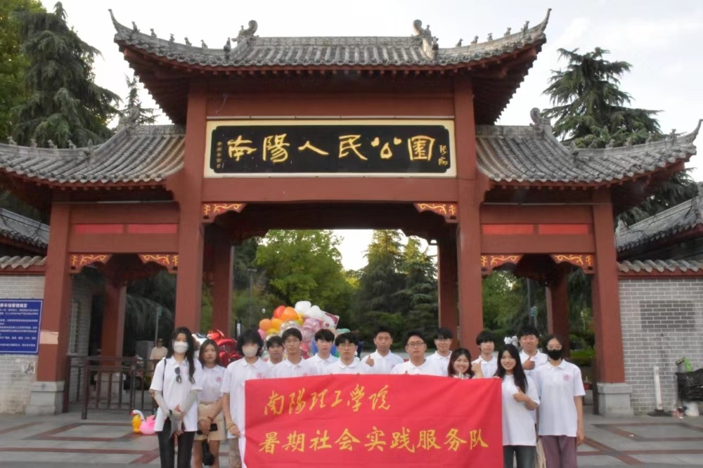 圖為南陽市人民公園生命大舞臺前拍照留念 南工學子 劉昕 攝