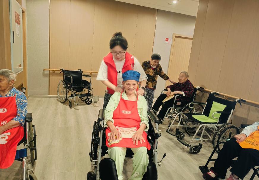 該服務(wù)中心布局清晰,一樓是供老人們放松身心的娛樂休閑區(qū)域,二、三樓則是老人們的居住樓層,環(huán)境溫馨安寧。本次活動重點在三樓,八位志愿者乘坐電梯到達居住樓層后,迅速有序地投入到陪護工作中。他們首先與老人們親切交談,了解老人們的生活狀況和需求,聆聽老人講述的故事,給予積極的反饋。面對行動不便的老人,志愿者們主動上前幫忙,有的協(xié)助老人推動輪椅,有的輔助老人進行步行練習。此外,志愿者們還為老人們講故事,讓老人們的生活增添了樂趣。他們細心地為老人們倒水,保障老人們的飲水需求。同時,志愿者們還為老人們提供按摩服務(wù),幫助老人們緩解身體的疲勞.