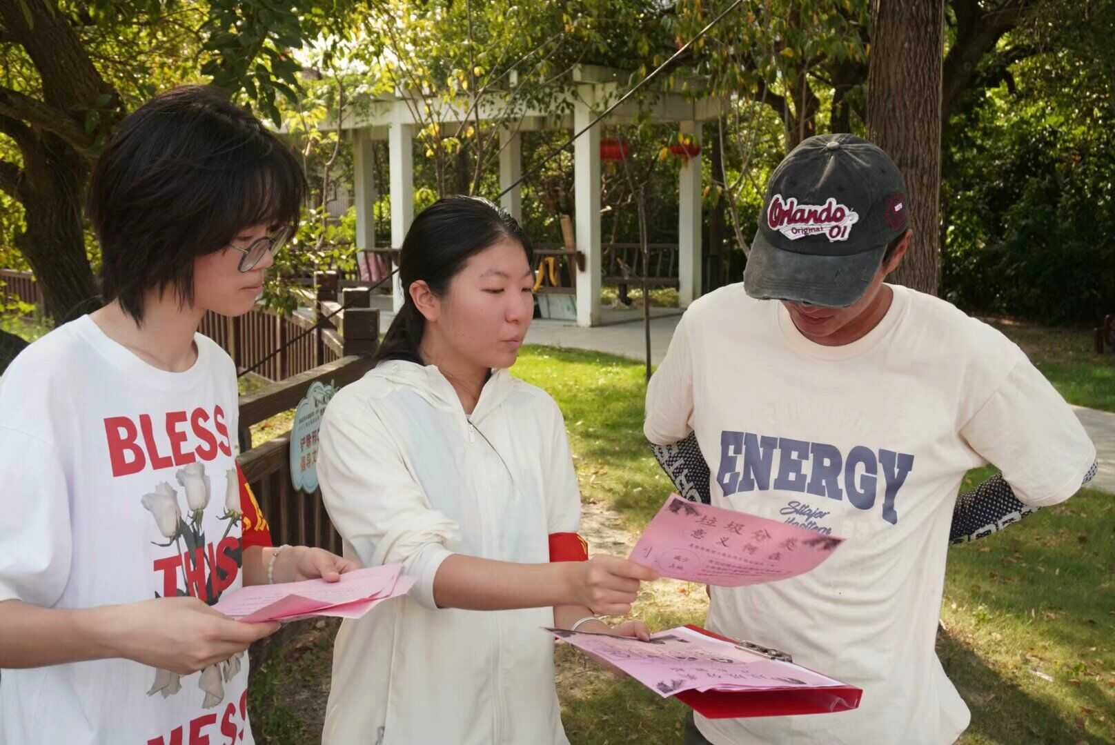 圖2為實踐隊成員為村民分發水資源保護宣傳資料 民聲匯,知成效外語“河小禹”們通過采訪從村民口中得知,后黃村在積極推進環境治理的同時,還依托自身的農業資源,發展了休閑農業和鄉村旅游,種植草莓、西紅柿、圣女果等時令蔬菜,打造“鄉村采摘游”品牌,為村民們帶來了可觀的經濟收入。