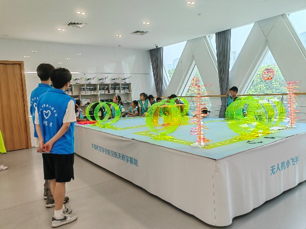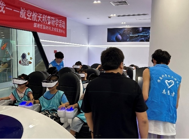 浩瀚星空是人類追求探索的永恒目標,未知宇宙是激起青年求知欲望的動力源泉。近日,在中國共產黨103周年華誕之際,為時刻激勵寧波大學信息學子懷揣報國情、增長報國志,在實踐中孕育形成“特別能吃苦、特別能奮斗、特別能攻關、特別能奉獻”的載人航天精神,以實際行動彰顯當代青年的責任和擔當,“再創輝煌”實踐團隊成員一行來到航空航天研學(寧波)基地開展暑期社會實踐活動,在場館人員的指導下,讓這里的小朋友們在“行走的課堂”中學習科學知識,體驗多彩文化,厚植航天愛國情懷,樹立科技報國理想。