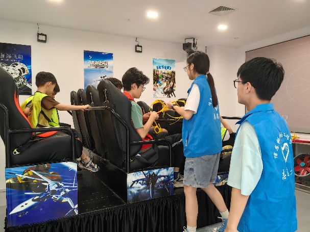 此外,實踐團隊成員還組織小朋友們參與模擬駕駛飛行任務,讓他們在模擬器中體驗飛行駕駛員的工作,深刻感受到航空駕駛任務的復雜性和艱巨性,進而學習團隊合作精神,提升解決問題的能力。