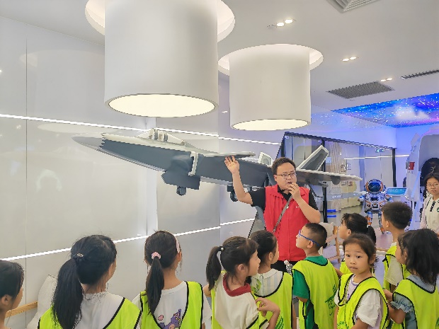 “小朋友們,你們知道中國的第一架飛機是誰發明的嗎?”伴隨著實踐隊員們的提問,一場關于航空航天科普小課堂開講啦!介紹無人機的構造和工作原理,講解中國航空航天的輝煌成就……這些原本只在教科書中出現的知識,如今得以親眼目睹,令小朋友們激動不已。