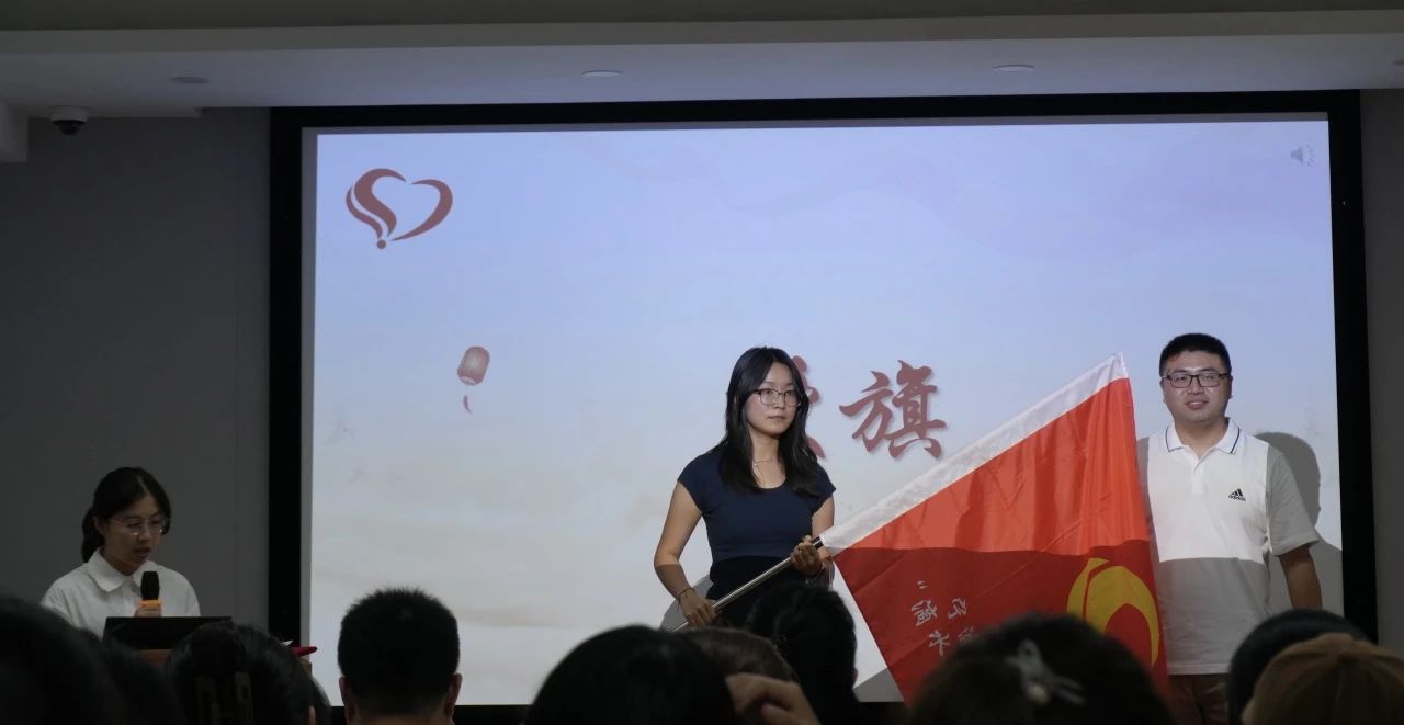 最后,余學(xué)長(zhǎng)為寧波大學(xué)教師教育學(xué)院暑期社會(huì)實(shí)踐服務(wù)團(tuán)代表團(tuán)授旗。這面旗幟不僅承載著學(xué)院的信任與期望,更是一份責(zé)任和使命的交托與傳承。我們將以這面旗幟為指引,勇往直前,不負(fù)重托。隨著龔小虹老師宣布出征令的響起,全場(chǎng)掌聲雷動(dòng)、歡呼聲此起彼伏。蒼翔志教小分隊(duì)的成員們將帶著這份榮耀與使命,勇往直前、不負(fù)重托。
