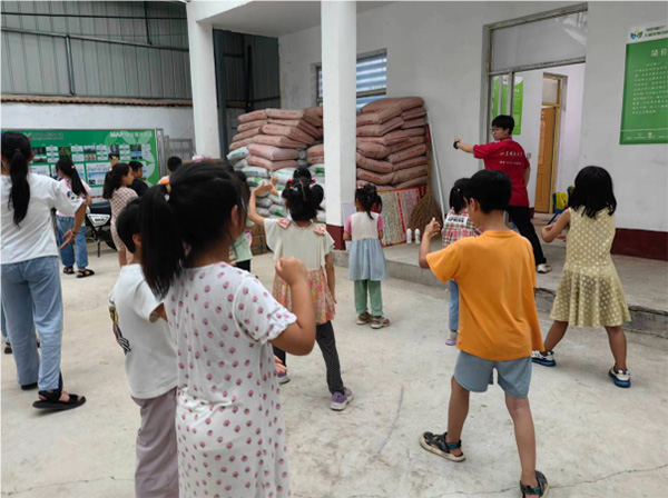 下午,在輔導(dǎo)完孩子們寫作業(yè)后,志愿者李澤鈺根據(jù)自身特長(zhǎng),給孩子們開了一節(jié)太極拳的課。太極拳是中國(guó)優(yōu)秀傳統(tǒng)文化的一部分,李老師在前面領(lǐng),孩子們?cè)谙旅婺7拢话逡谎垲H有風(fēng)范。太極拳不僅可以強(qiáng)身健體更能讓孩子們集中注意力。同時(shí),也能讓他們對(duì)傳統(tǒng)文化有更深的了解。